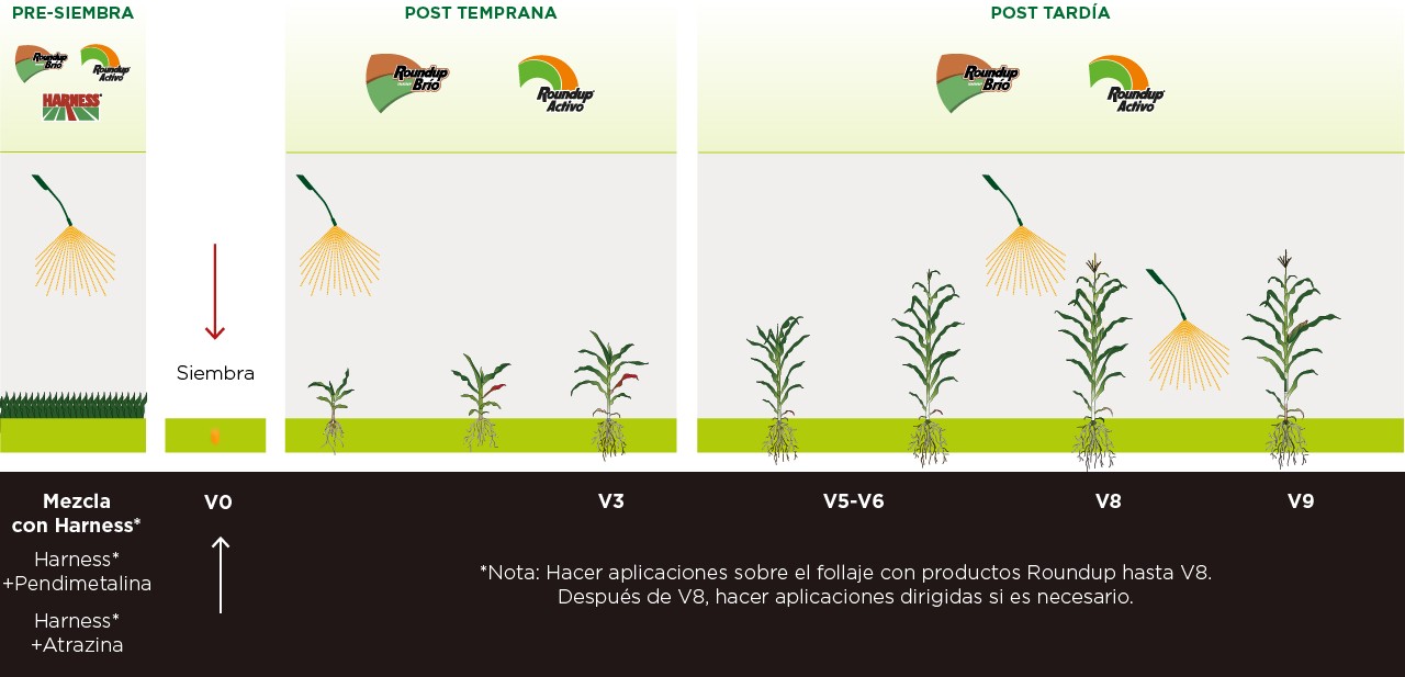 Los híbridos DEKALB con tecnología VTTriplePRO® y VTPro® tienen la tecnología Roundup Ready® MAÍZ 2, que le confiere tolerancia a la aplicación de herbicidas de la familia Roundup®.
