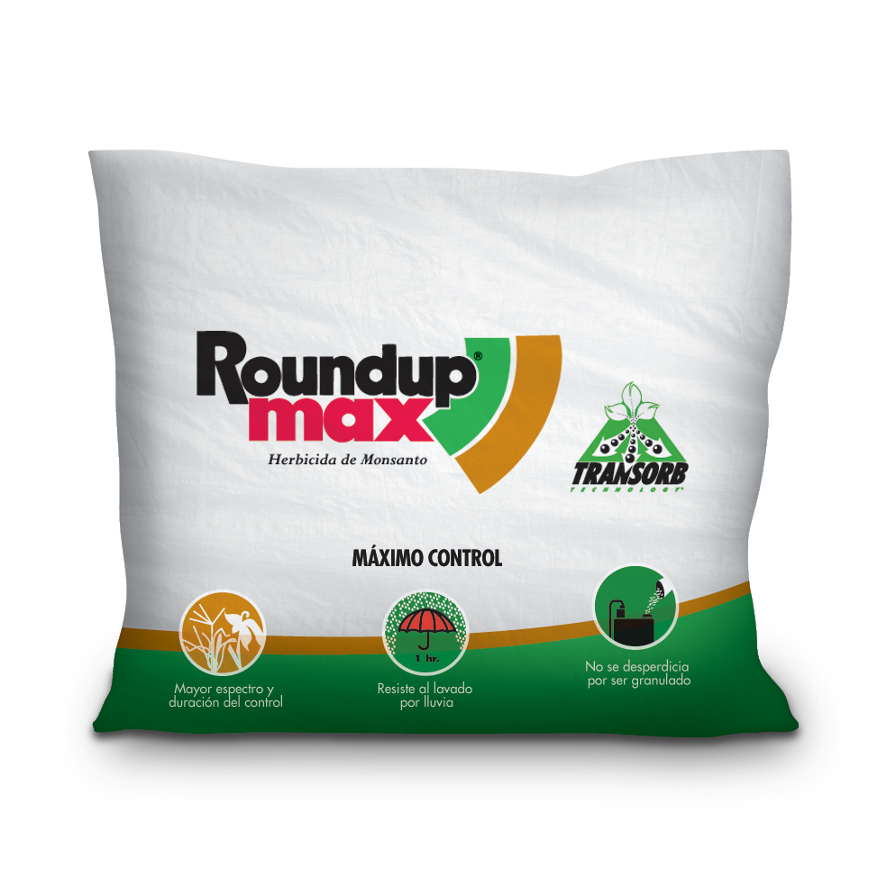 Roundup ® Max con TRANSORB ® es un herbicida granulado de Monsanto ® con una larga trayectoria. Su acción sistémica permite que el producto vaya a la raíz en máximo 1 hora gracias a la tecnología TRANSORB ® . Es de aplicación post-emergente y no selectivo. Es recomendado para el control de malezas anuales y perennes.